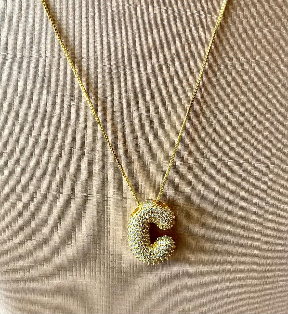 Início Banho de ouro Colares Colar Letra Puf C
