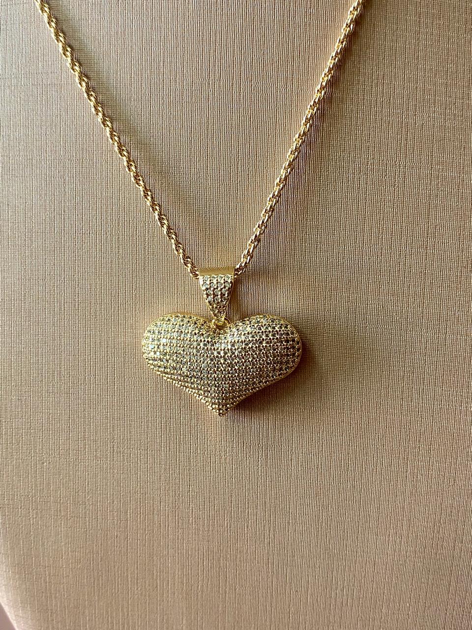 Início Banho de ouro Colares Colar Luxo Coração Cravejado