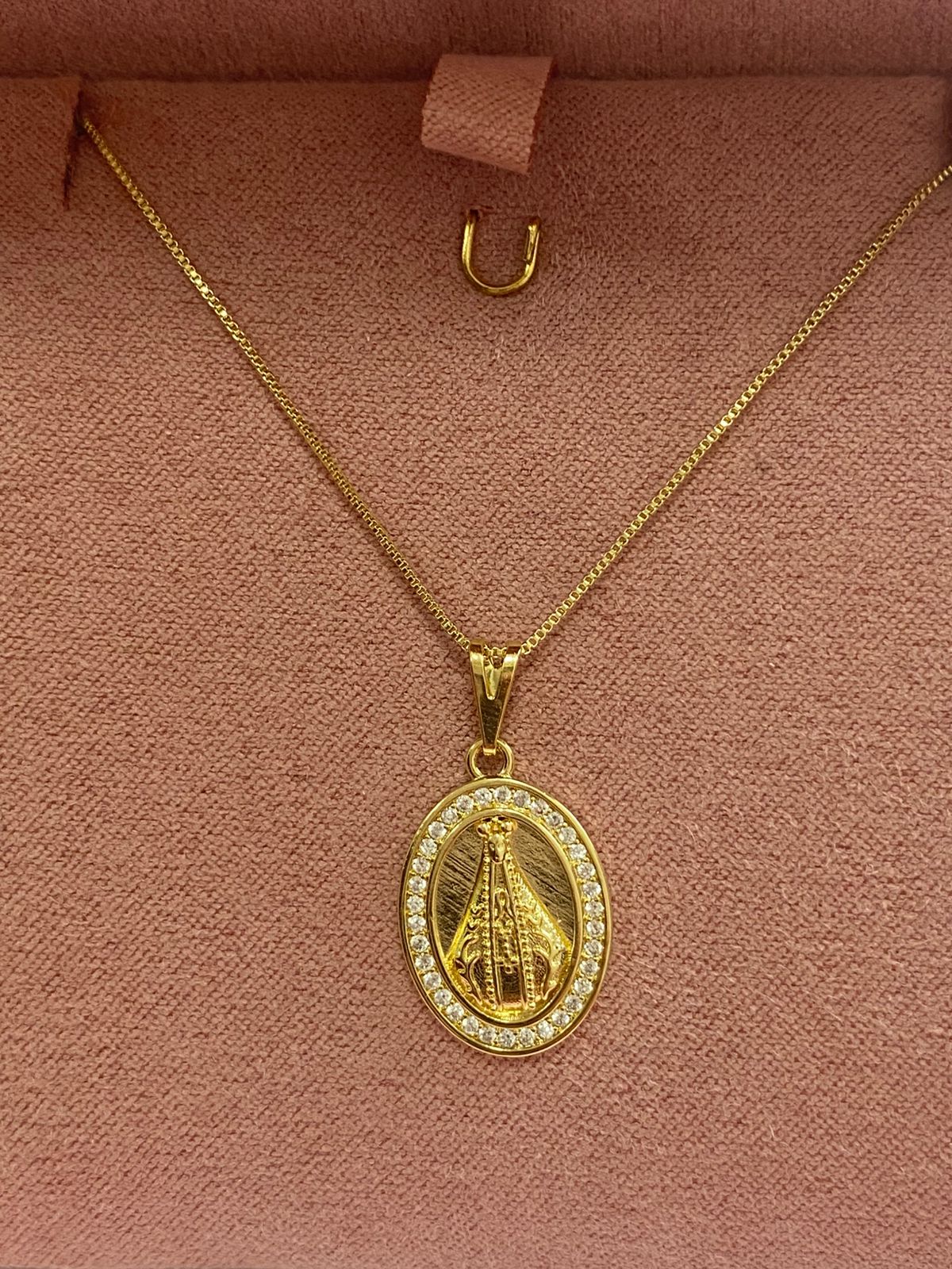 Início Banho de ouro Colares Colar medalha de Nossa Senhora