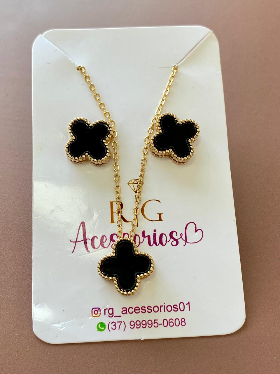 Início Banho de ouro Conjunto Conjunto trevo preto
