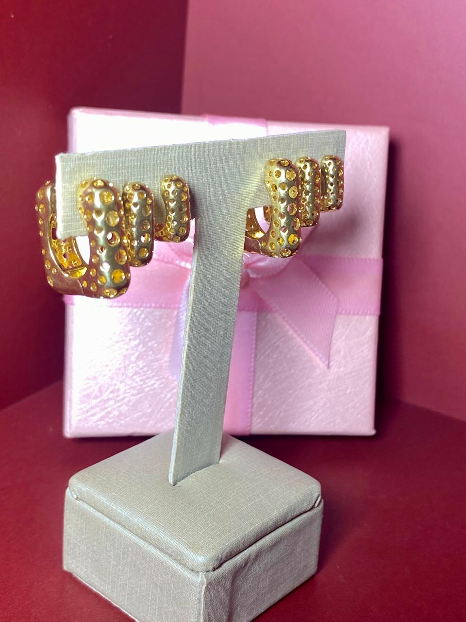 Início Banho de ouro Trios Trio Argolinha Quadrada com Detalhes